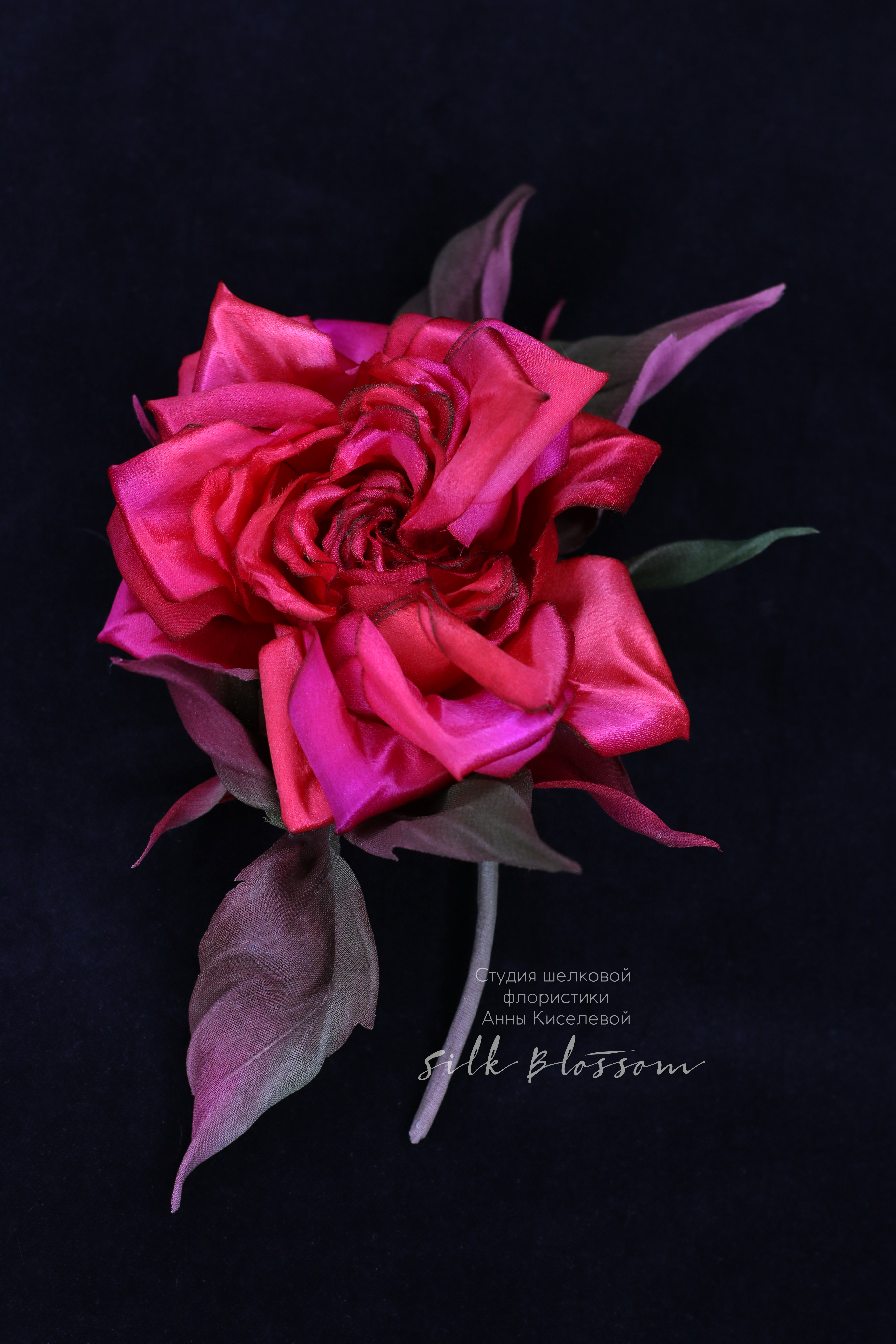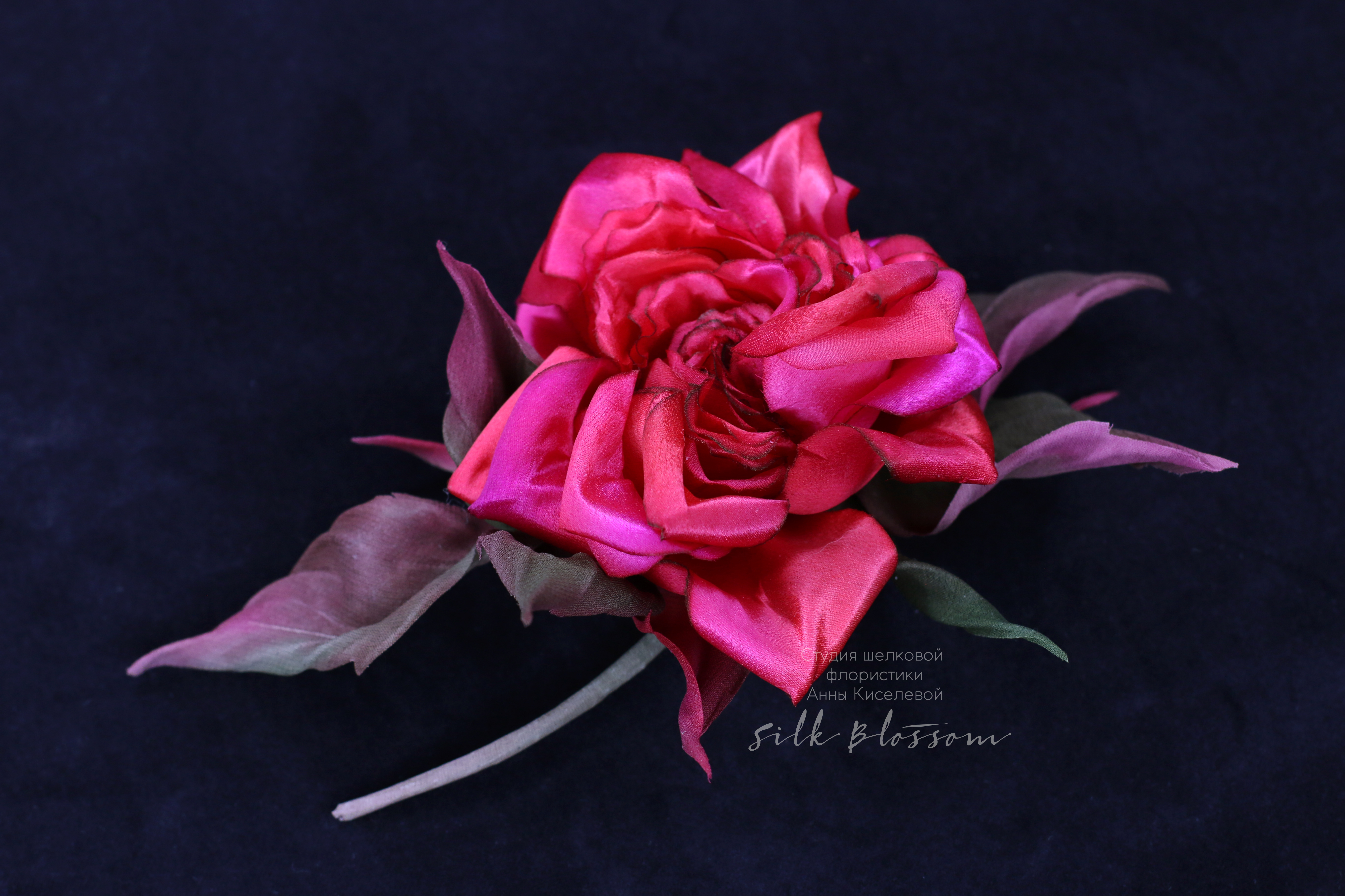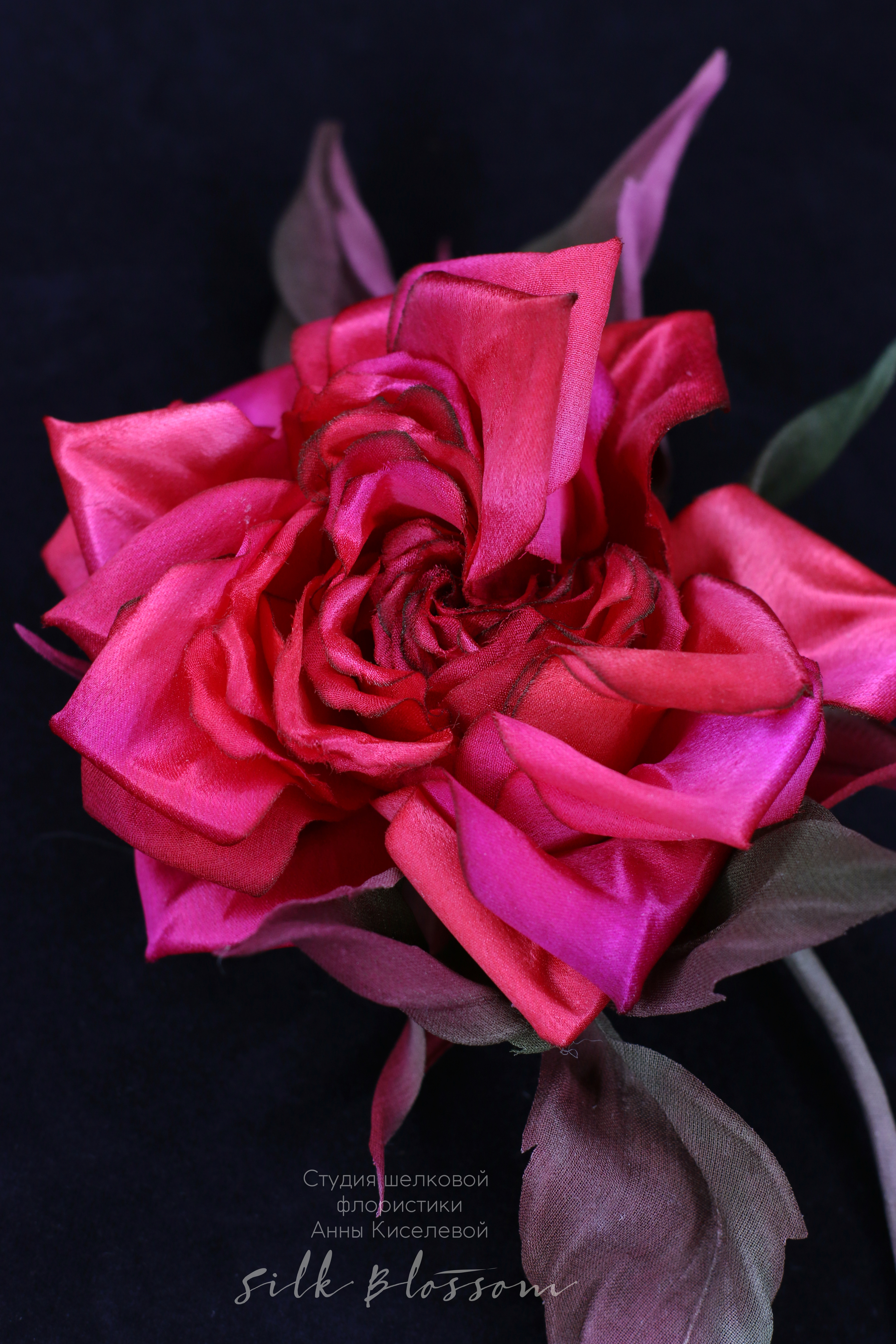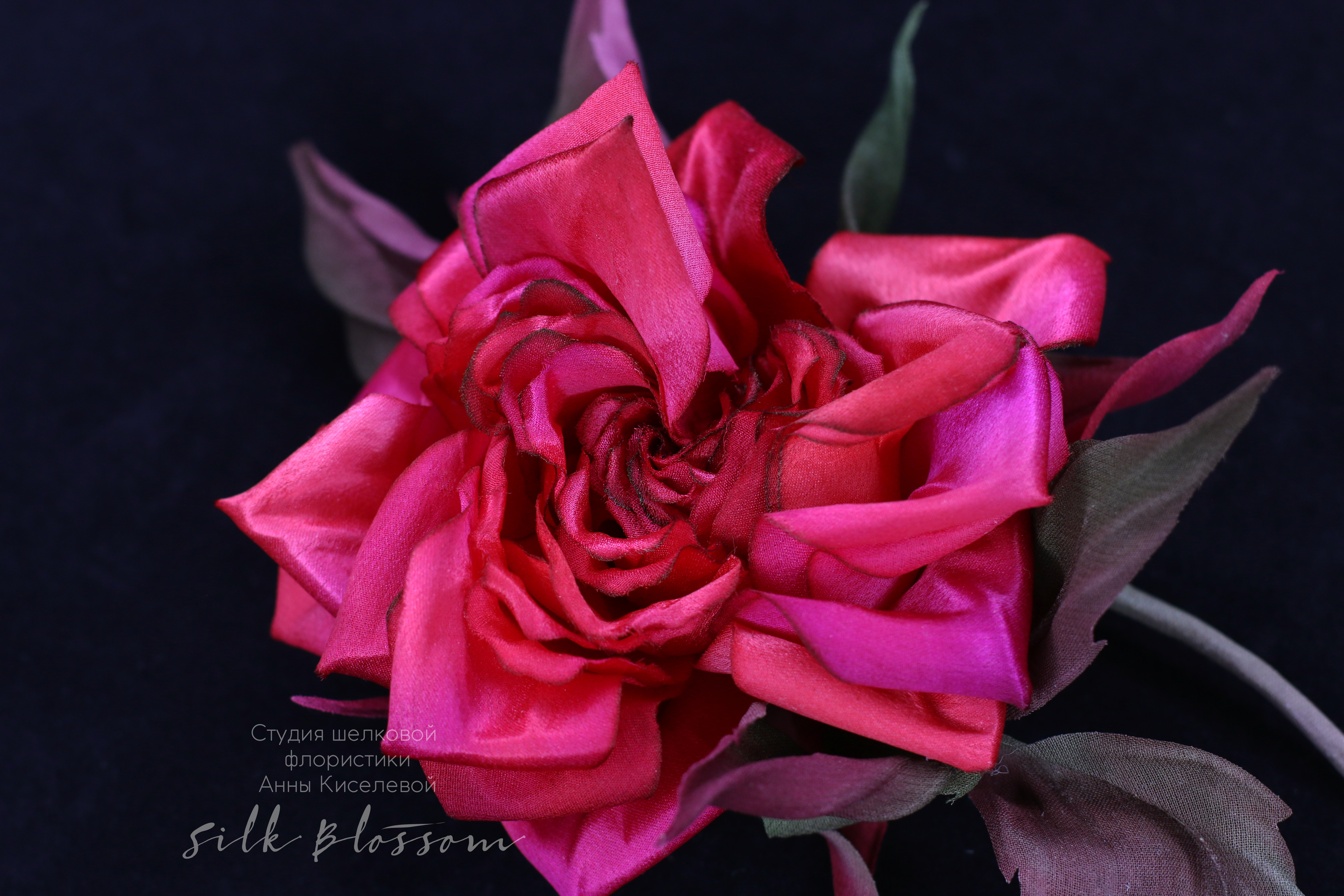 Роза из натурального шелка. Ручное окрашивание. Авторская работа.