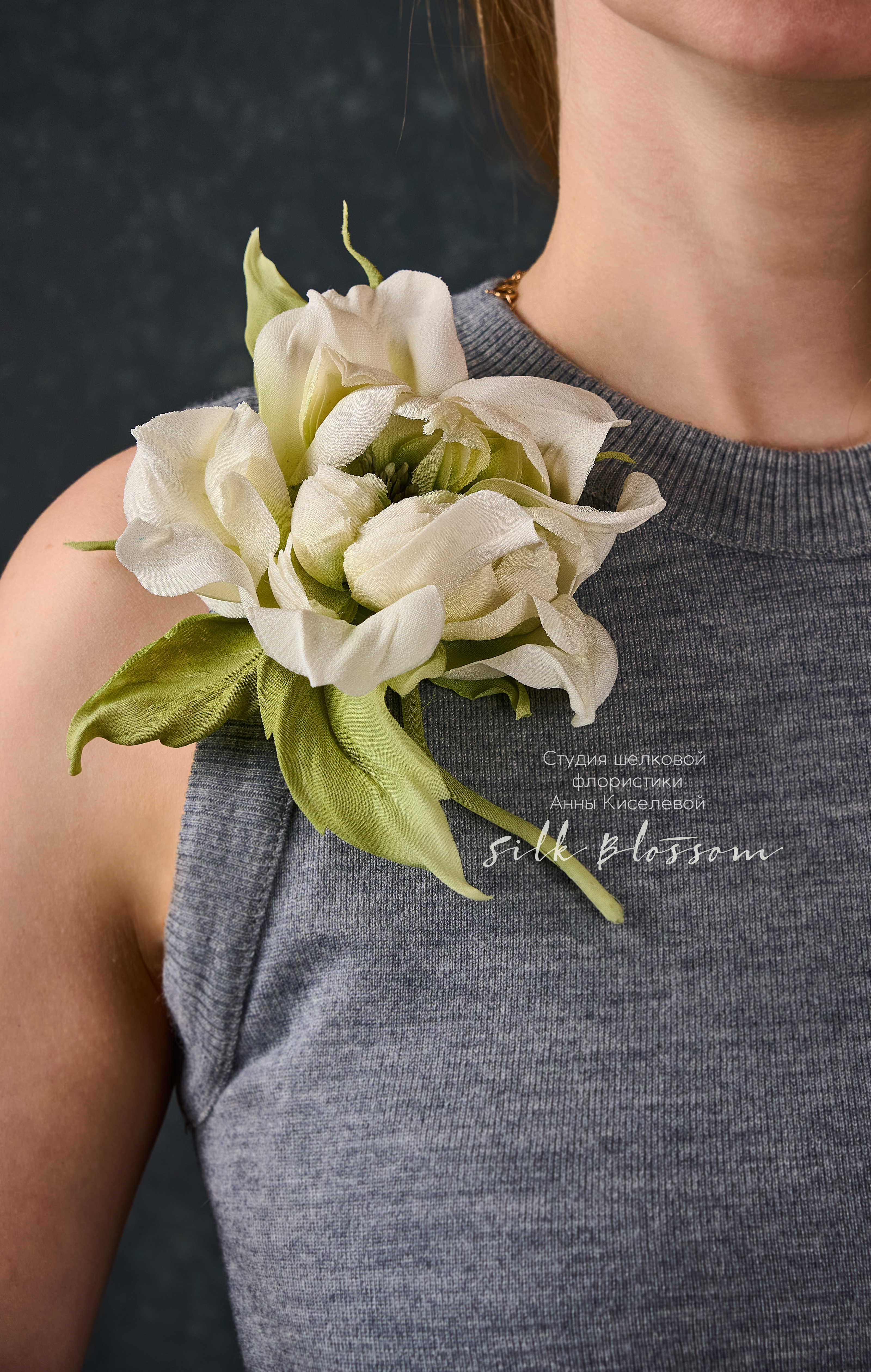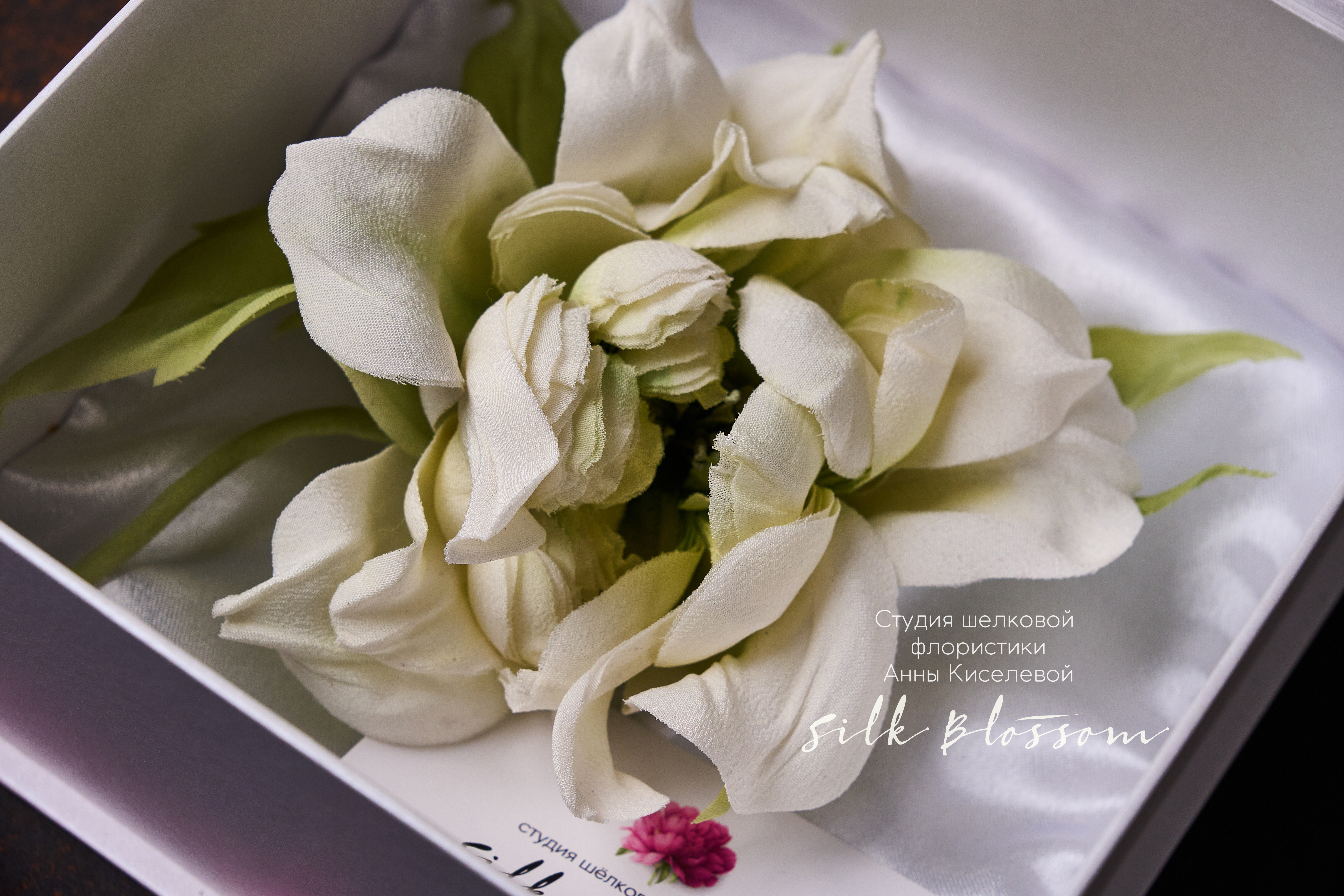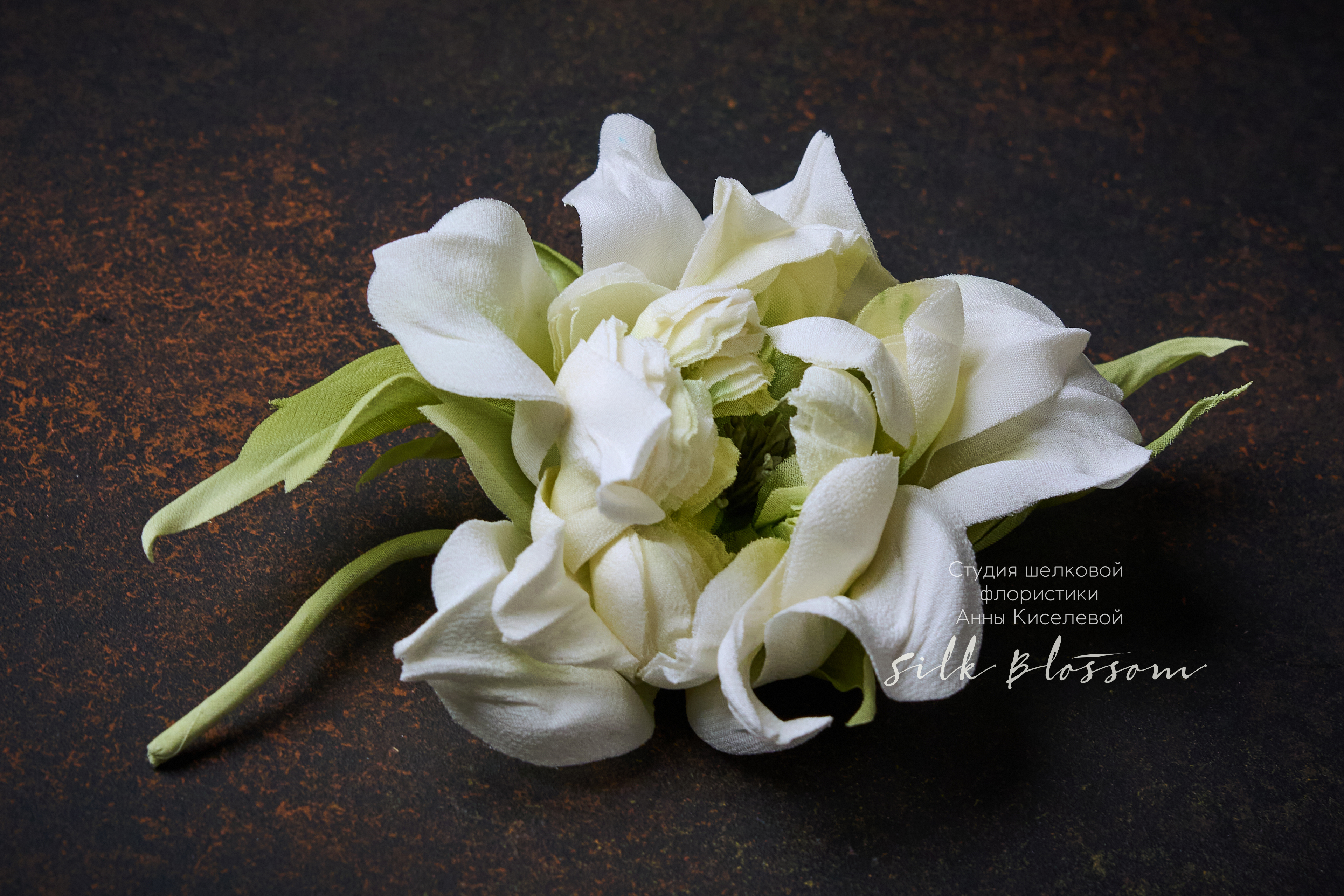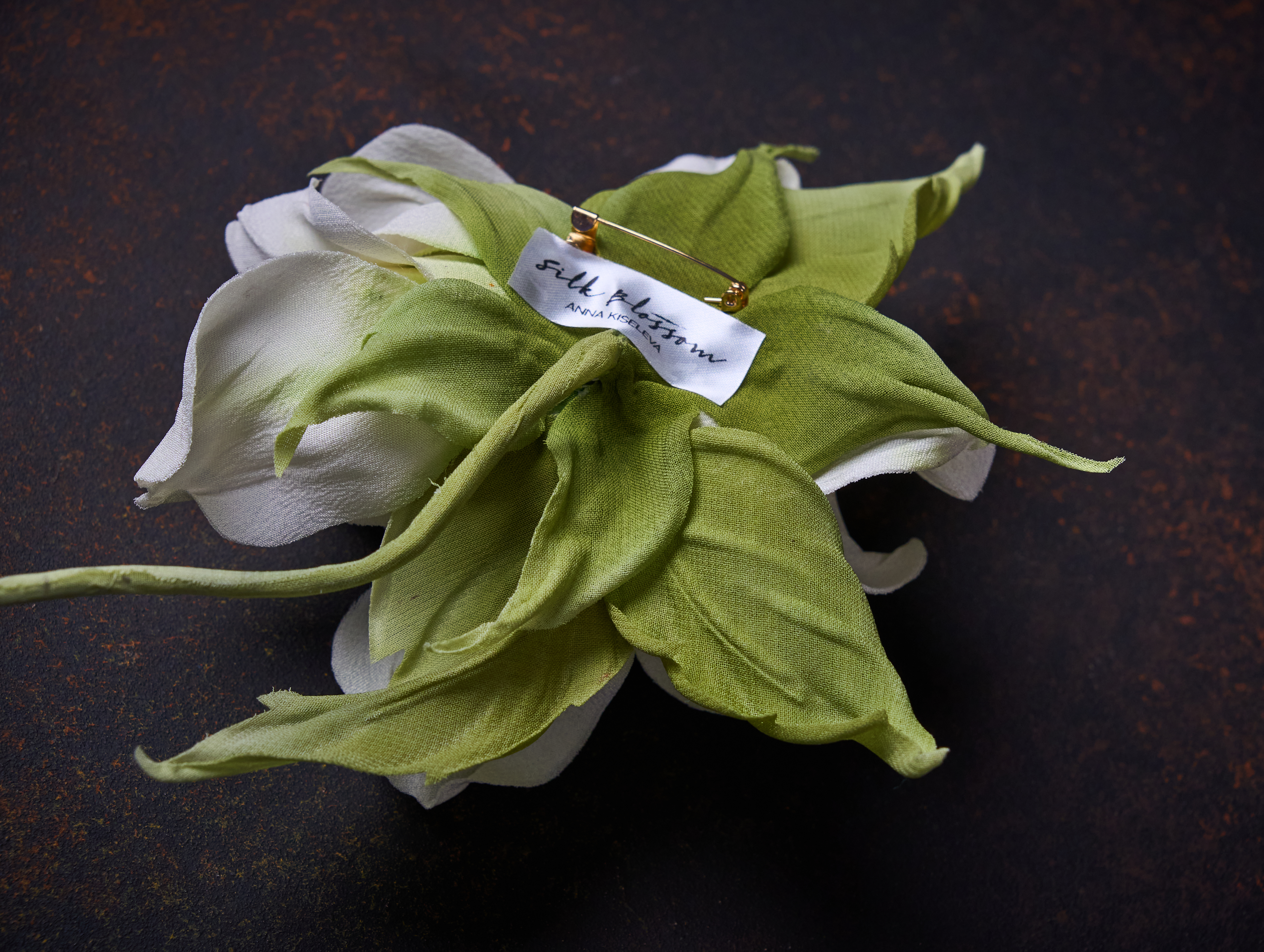 Каждая брошь создаётся вручную в мастерской Silk Blossom и является уникальной — точное повторение невозможно.