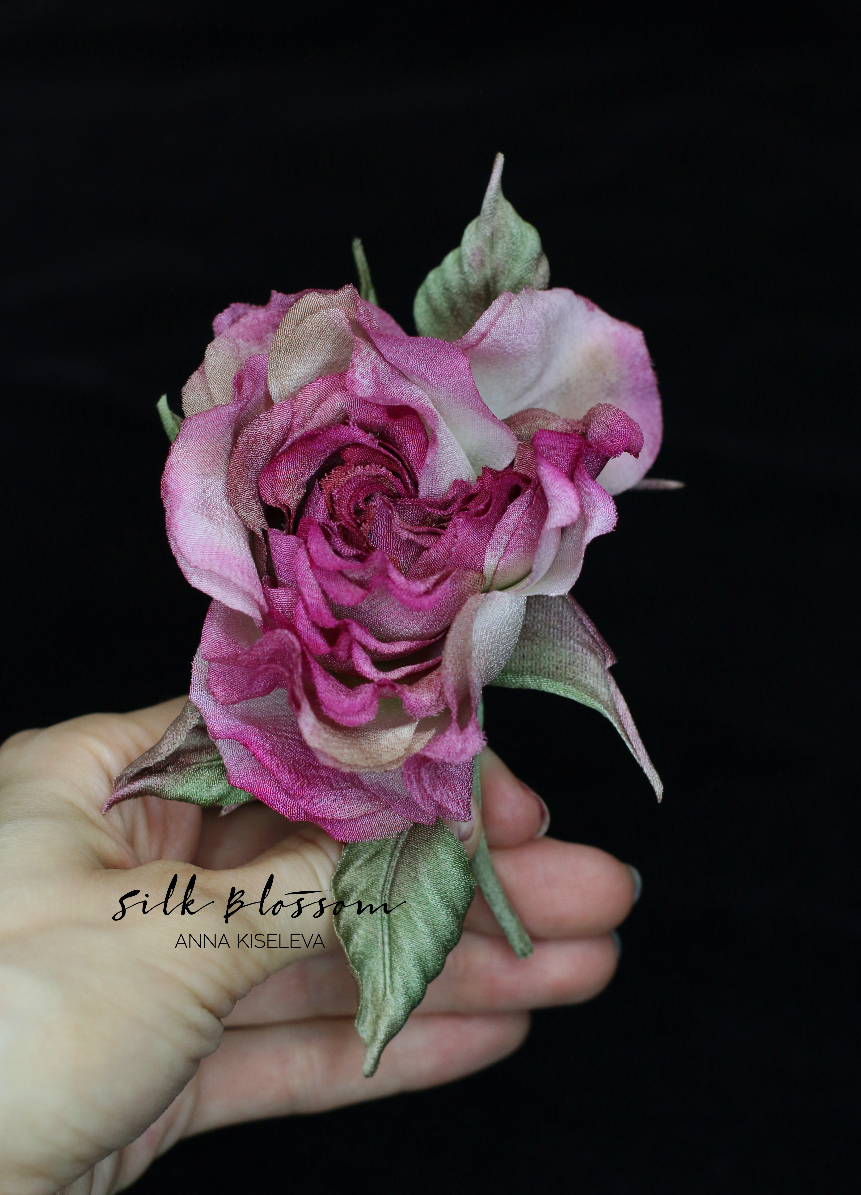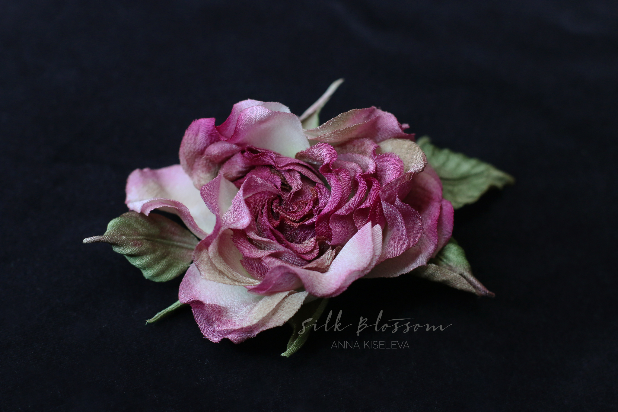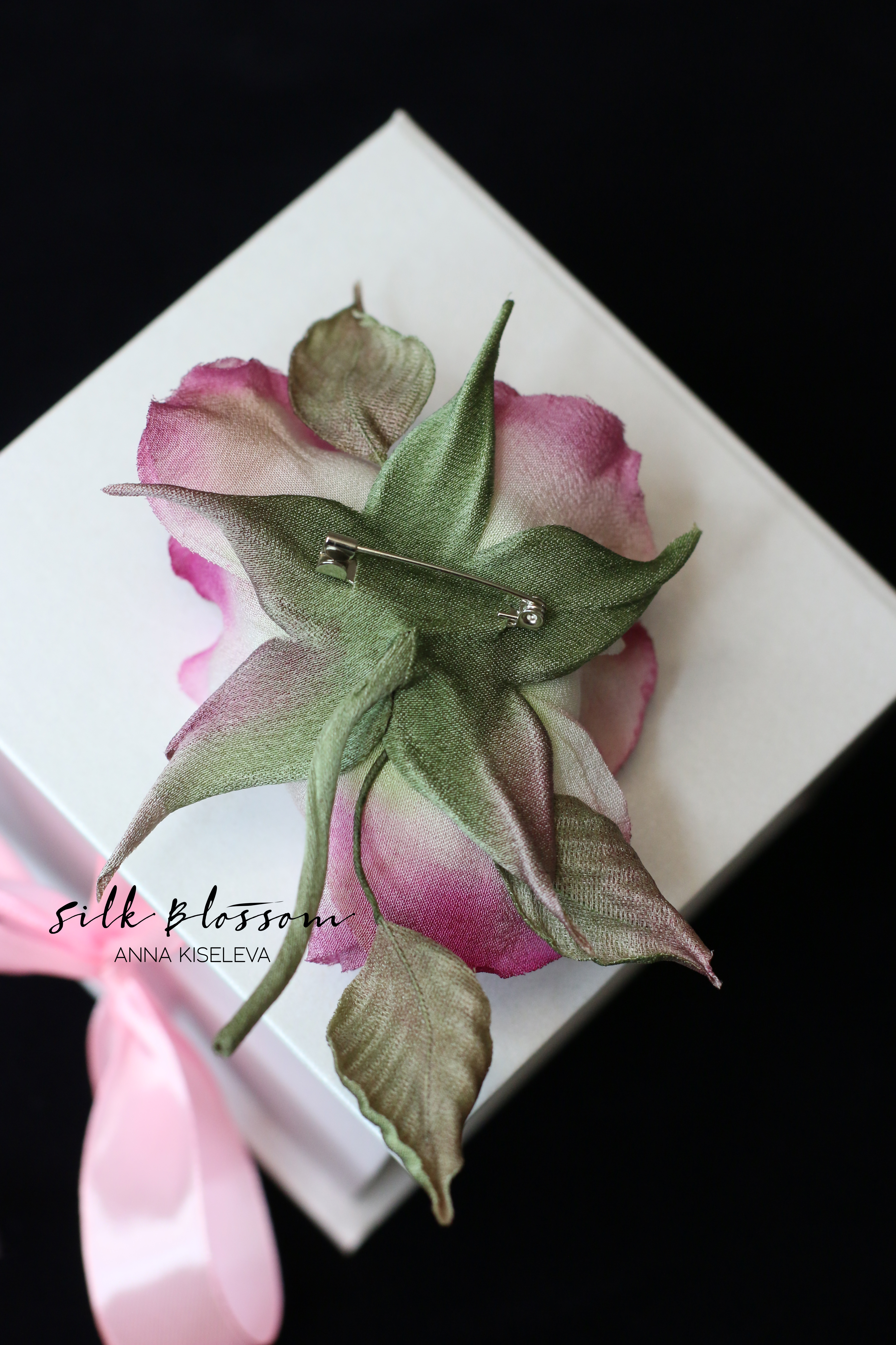 Брошь - роза из натурального шелка. Полностью ручная работа. Роза миниатюрная, но очень изящная, естественная, натуралистичная. Прекрасный аксессуар, который не оставит Вас без комплиментов.